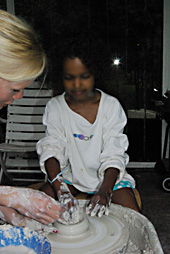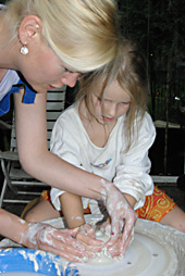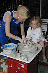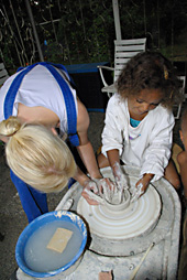 Töpfern mit Kindern an der Drehscheibe |