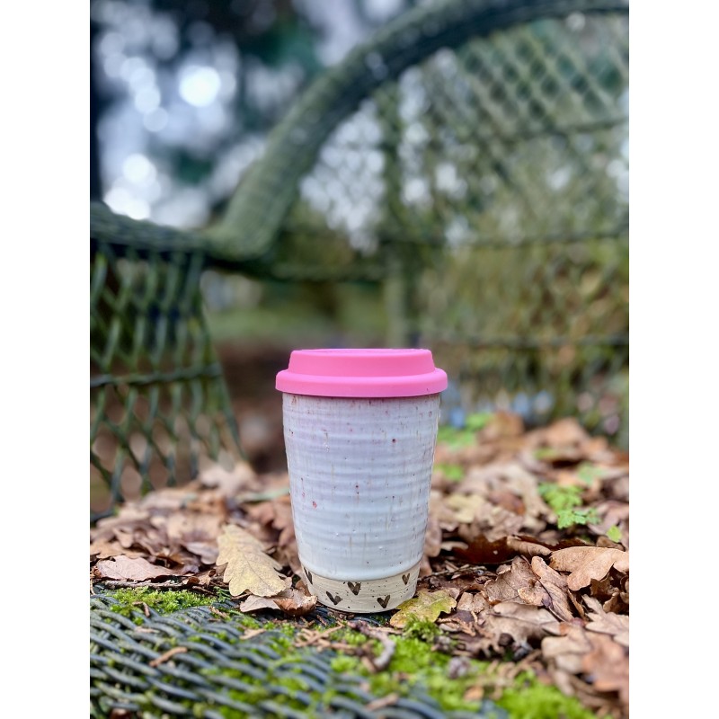 Diesen Becher habe ich auf der Töpferscheibe gedreht, abgedreht, verziert und bemalt.