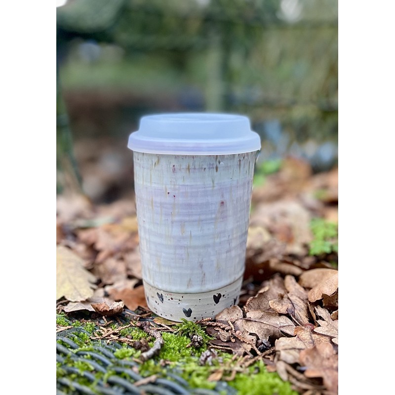 Diesen Becher habe ich auf der Töpferscheibe gedreht, abgedreht, verziert und bemalt.