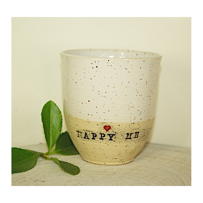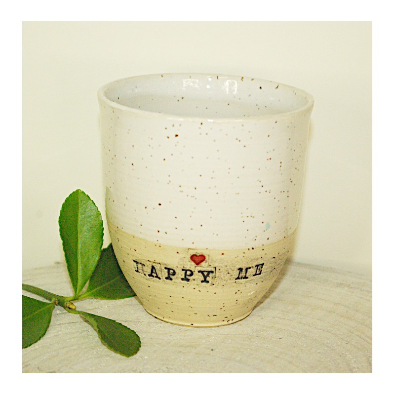 Diesen Becher habe ich auf der Töpferscheibe gedreht, abgedreht, verziert und bemalt.