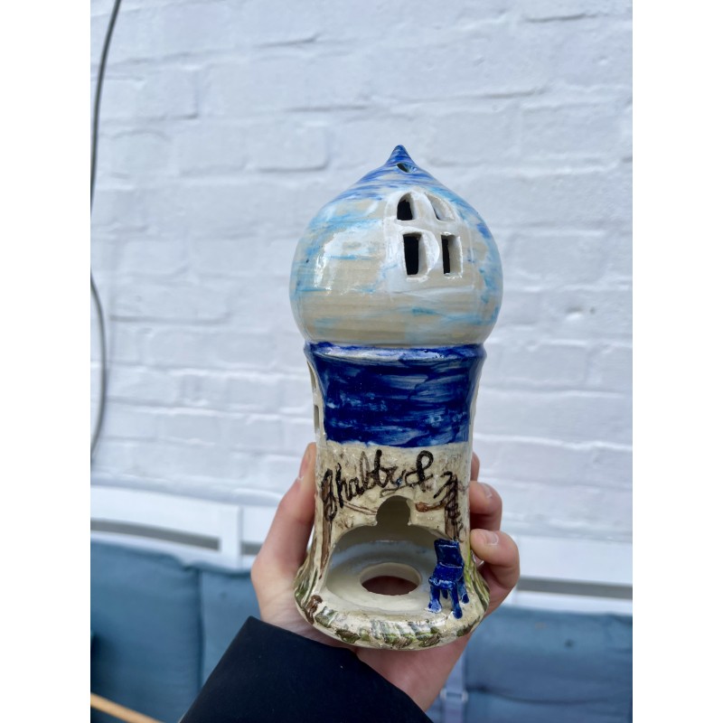 Dieses Schloss habe ich auf der Töpferscheibe gedreht, abgedreht, verziert und bemalt.